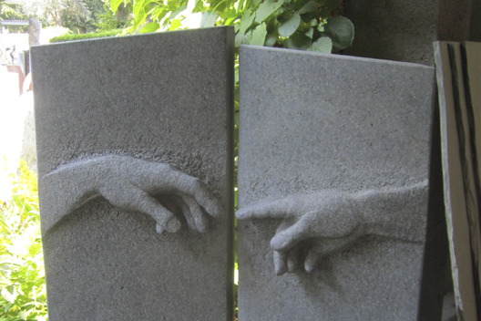 2-teiliger Grabstein aus Diabas mit Relief 'Erschaffung Adams', Steinbreite gesamt 65cm